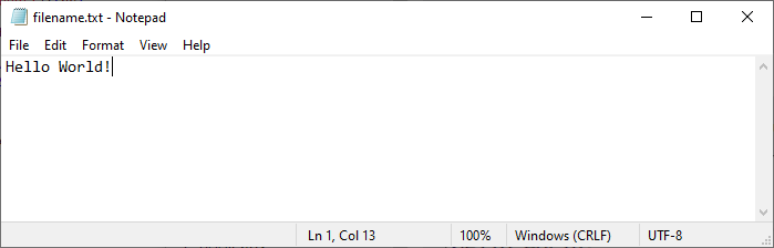 As a result, when we open the file on our computer, it says "Hello World!" instead of "Some text":