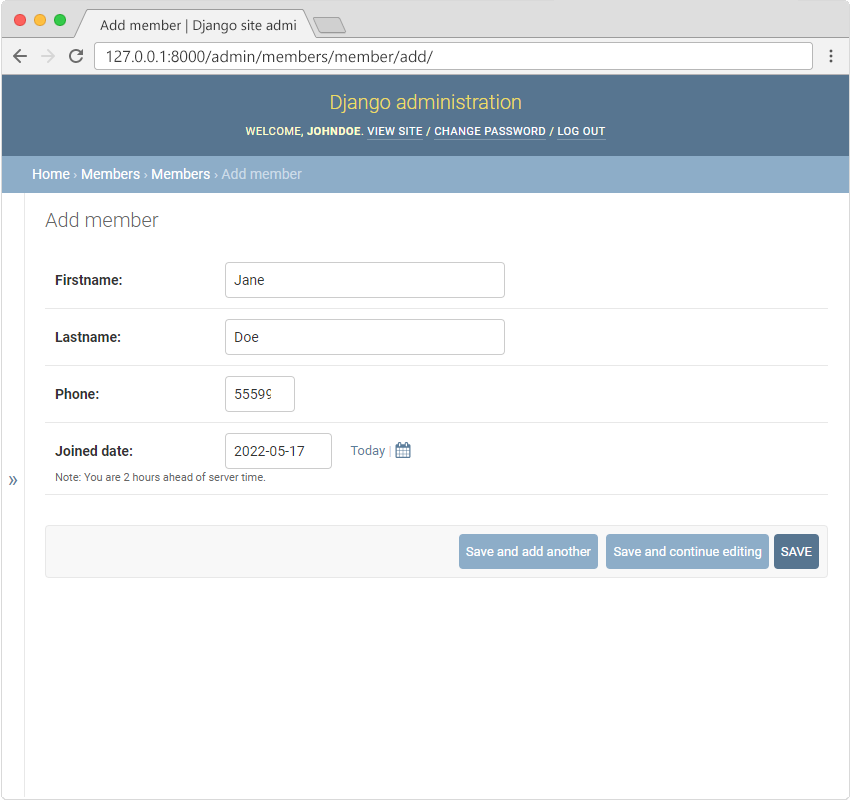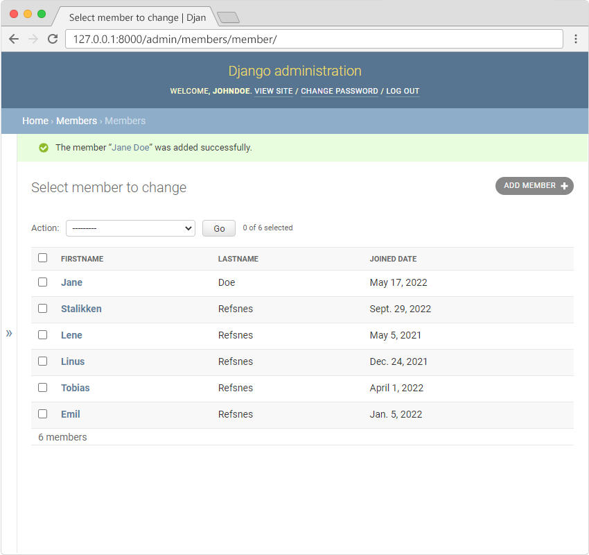 Django Admin - Add Members