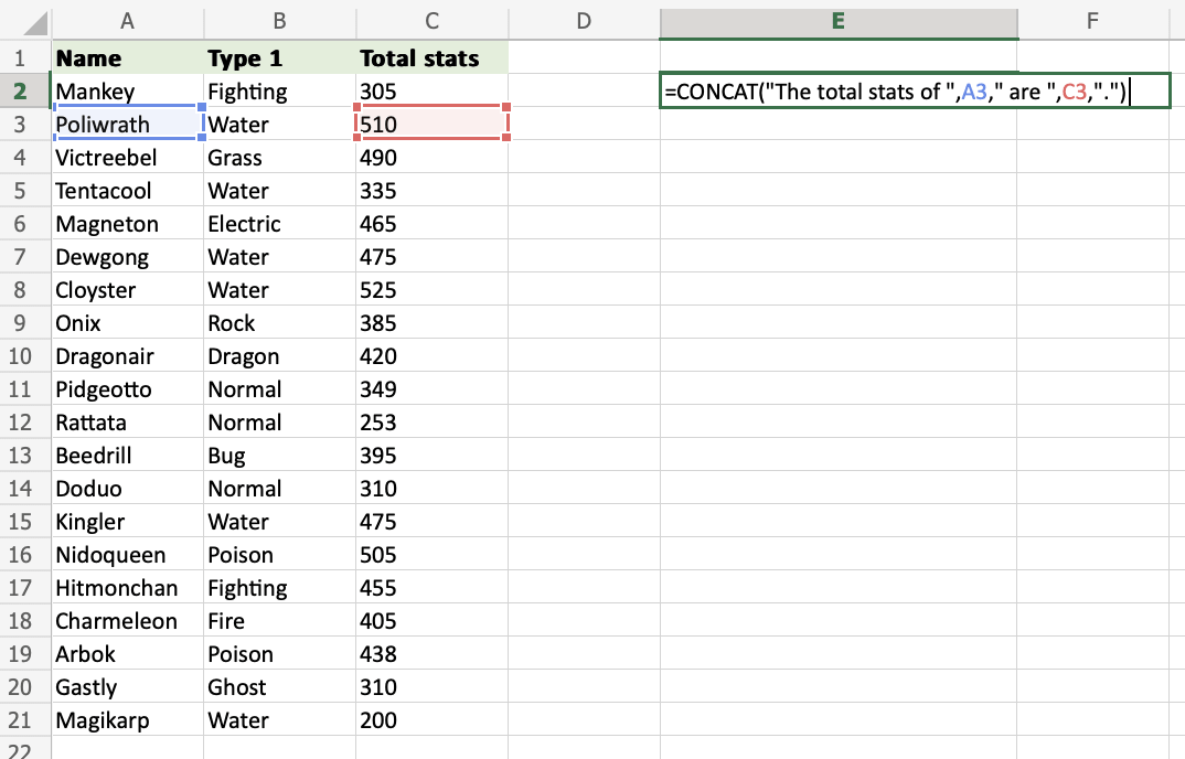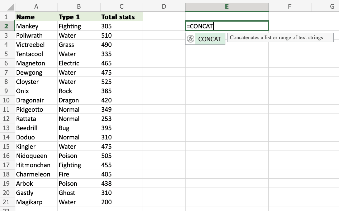 Info: CONCAT is a new version of the old CONCATENATE function. Recent versions of Excel do not accept the old CONCATENATE function as it is only compatible with earlier versions of Excel. To use COCATENATE in the latest versions of Excel, use CONCAT.