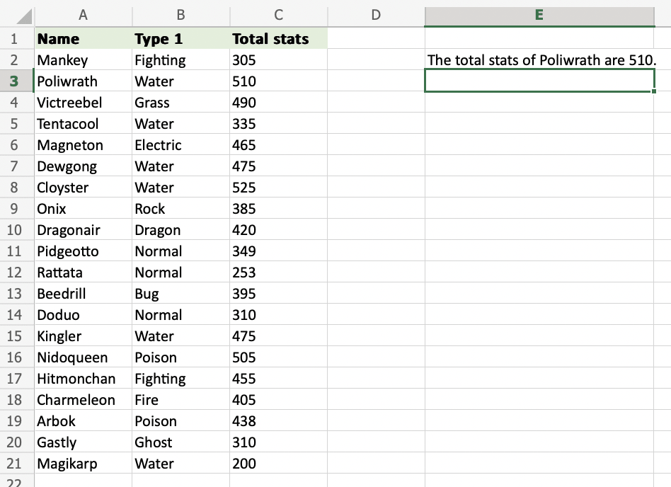 Combine the cell values with text strings as delimiters to make the output more descriptive!