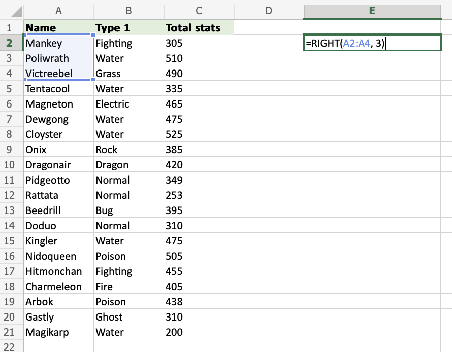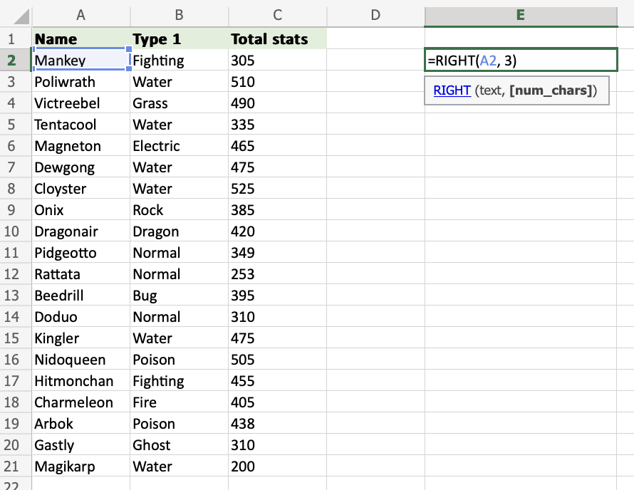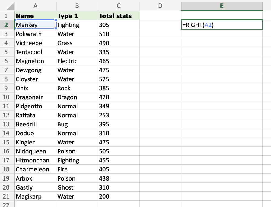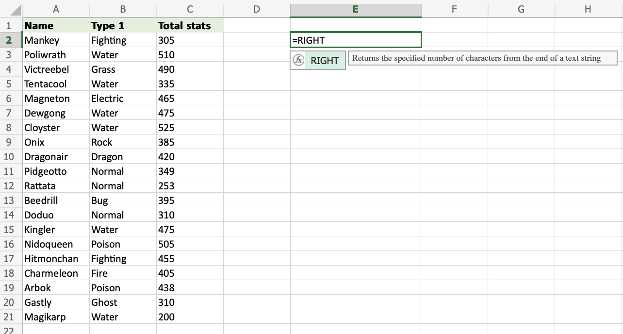 2. Type =RIGHT