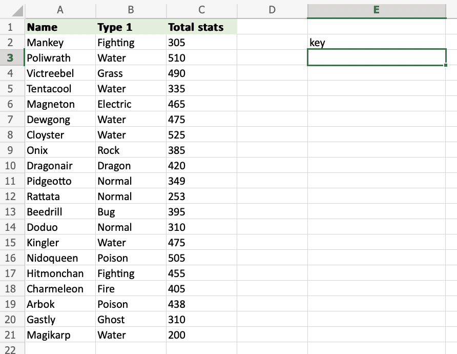 1. Select a cell E2