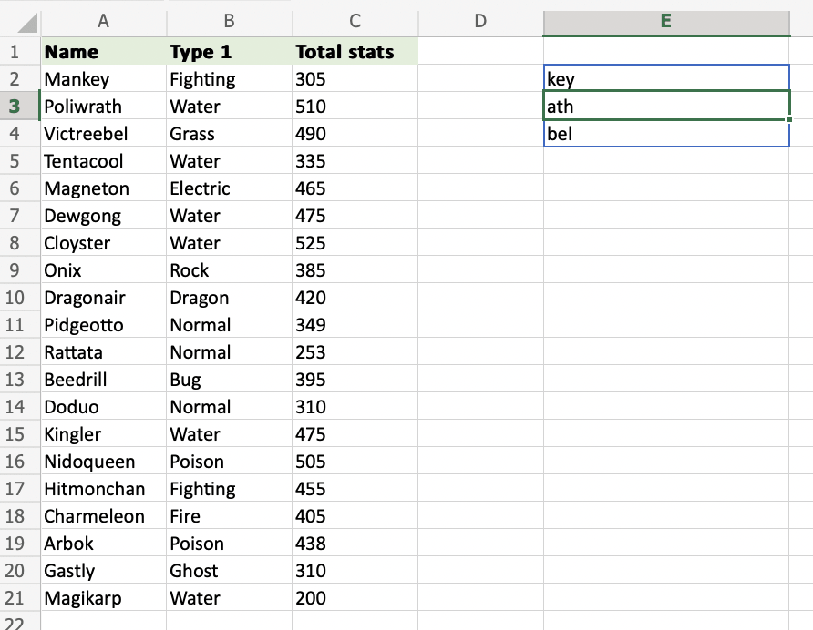 1. Select the cells (A2:A4) and define the length of characters you want to retrieve, using a , as a delimiter (A2:A4,3)