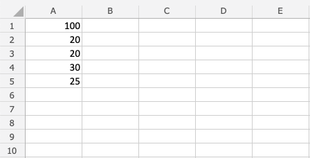 Let's have a look at an example where we subtract B(5) from the range A1:A10 using absolute reference and fill function.