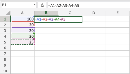 Tip: You can add more values into the formula by typing (-) between the cells.