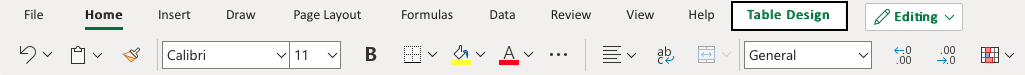 2. Click the Table design menu