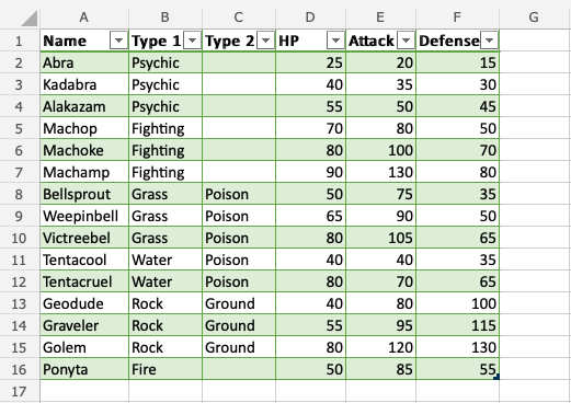 Note: The Table Style that is already applied has a green rectangle around it. In this case Blue, Table Style Medium 2.