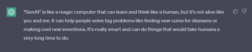 A response from a Generative AI (in this case, ChatGPT) could be: