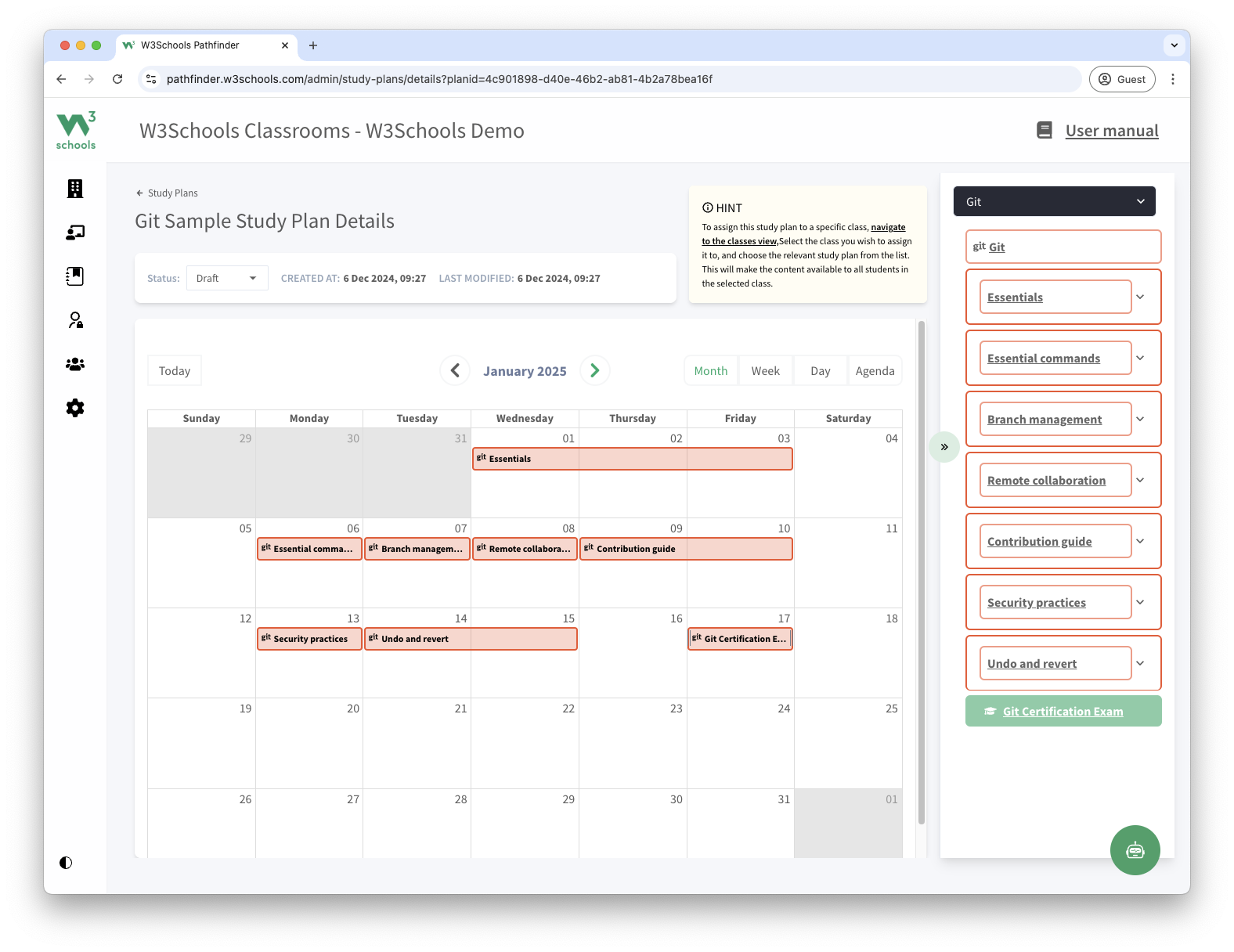 This study plan is a feature of W3Schools Academy.