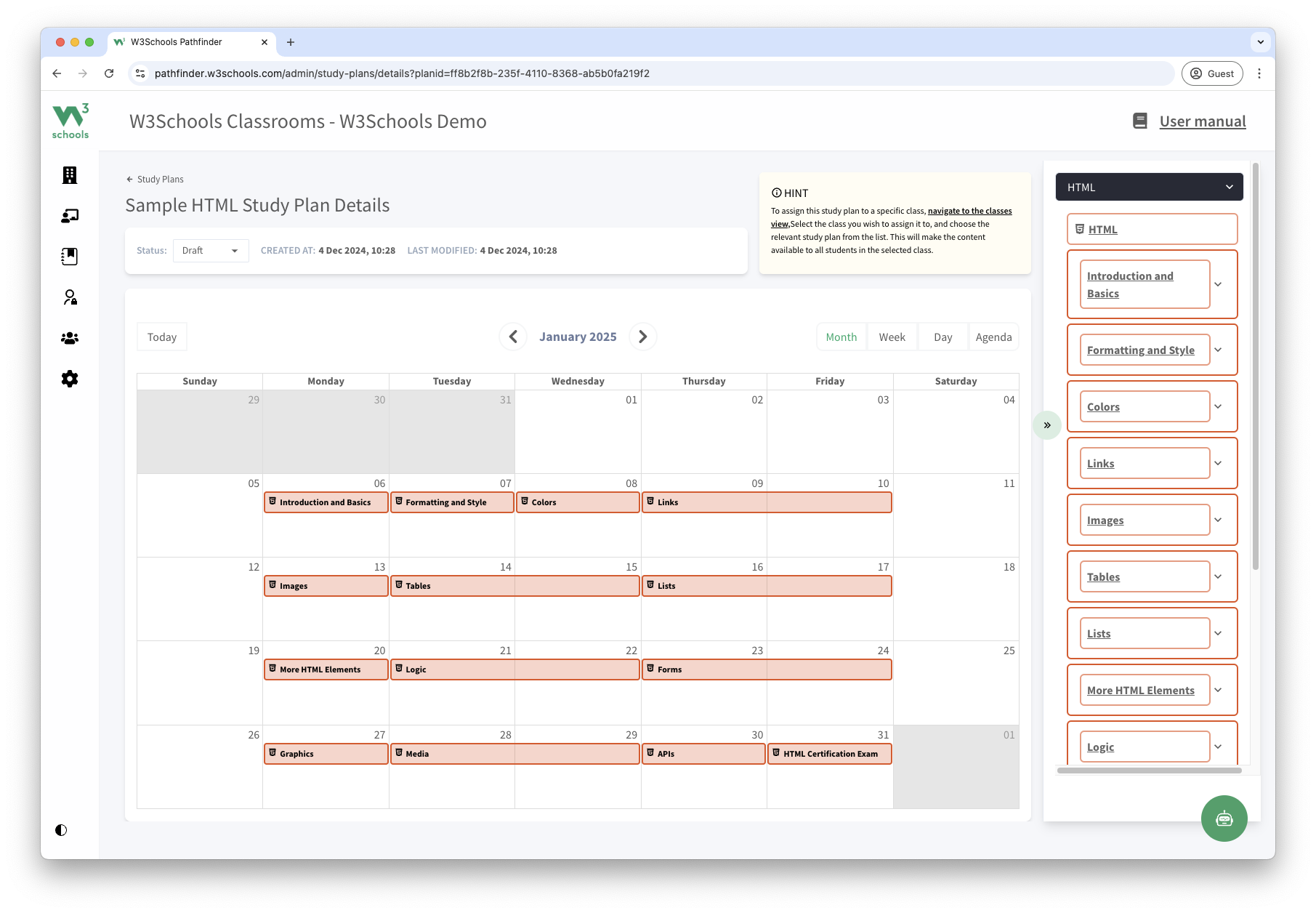 Save time with pre-built teacher materials and study plans. Easily organize your class with a timeline from the introduction of HTML to the final exam.