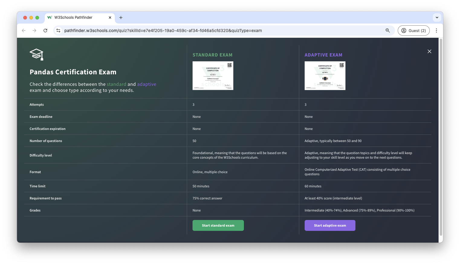 The Pandas exam is a test that summarizes the W3Schools Pandas syllabus.