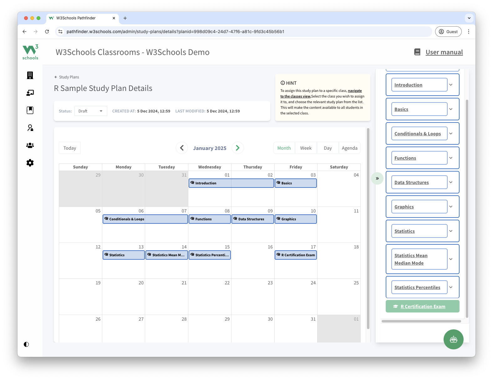 Save time with pre-built teacher materials and study plans. Easily organize your class with a timeline from the introduction of R to the final exam.