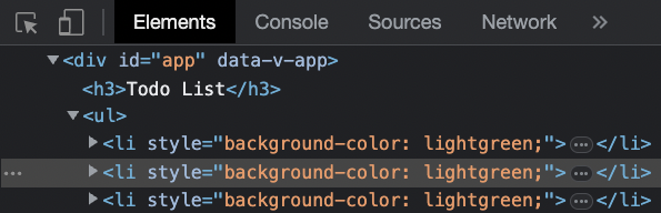 To see the point of this section, that properties can fall through to the root element inside the <template> of our component, we can give the list items some styling from App.vue:
